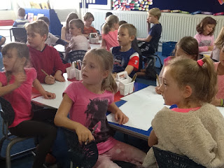 We watched a youtube video on how to draw the 'Cat in the Hat'. Mrs Nicholson drew it on the whiteboard to show us how easy it was. Then it was our turn. We drew and helped our buddy to follow the instructions and draw beside us.